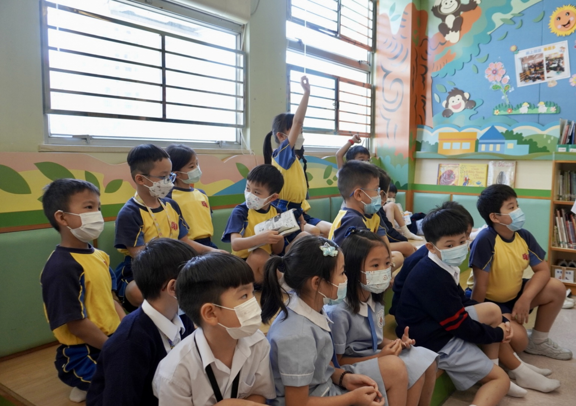 小息時,圖書科老師會安排同學到圖書館聽故事。透過老師講故事活動,讓同學從小養成閱讀的興趣和習慣,營造閱讀的氛圍。同學們都留心地聽故事,共同度過一個歡悅的小息。